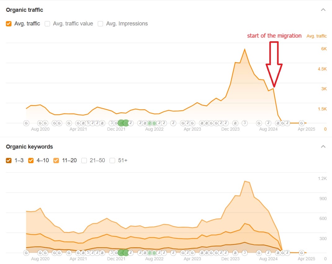 Before the clinic started working with Miromind, its domain was experiencing a sharp decline in organic traffic and keyword rankings.